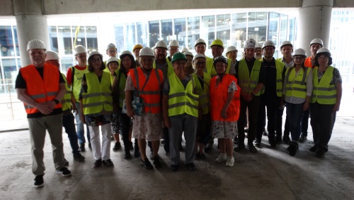 Następnie grupa udała się na wizytę na placu budowy kompleksu Skyliner, gdzie z bliska można było przyjrzeć się jednej z najbardziej nowoczesnych inwestycji biurowych w Warszawie. Spotkanie to pozwoliło na poznanie zaawansowanych rozwiązań technologicznych wykorzystywanych przy realizacji wielokondygnacyjnych obiektów.