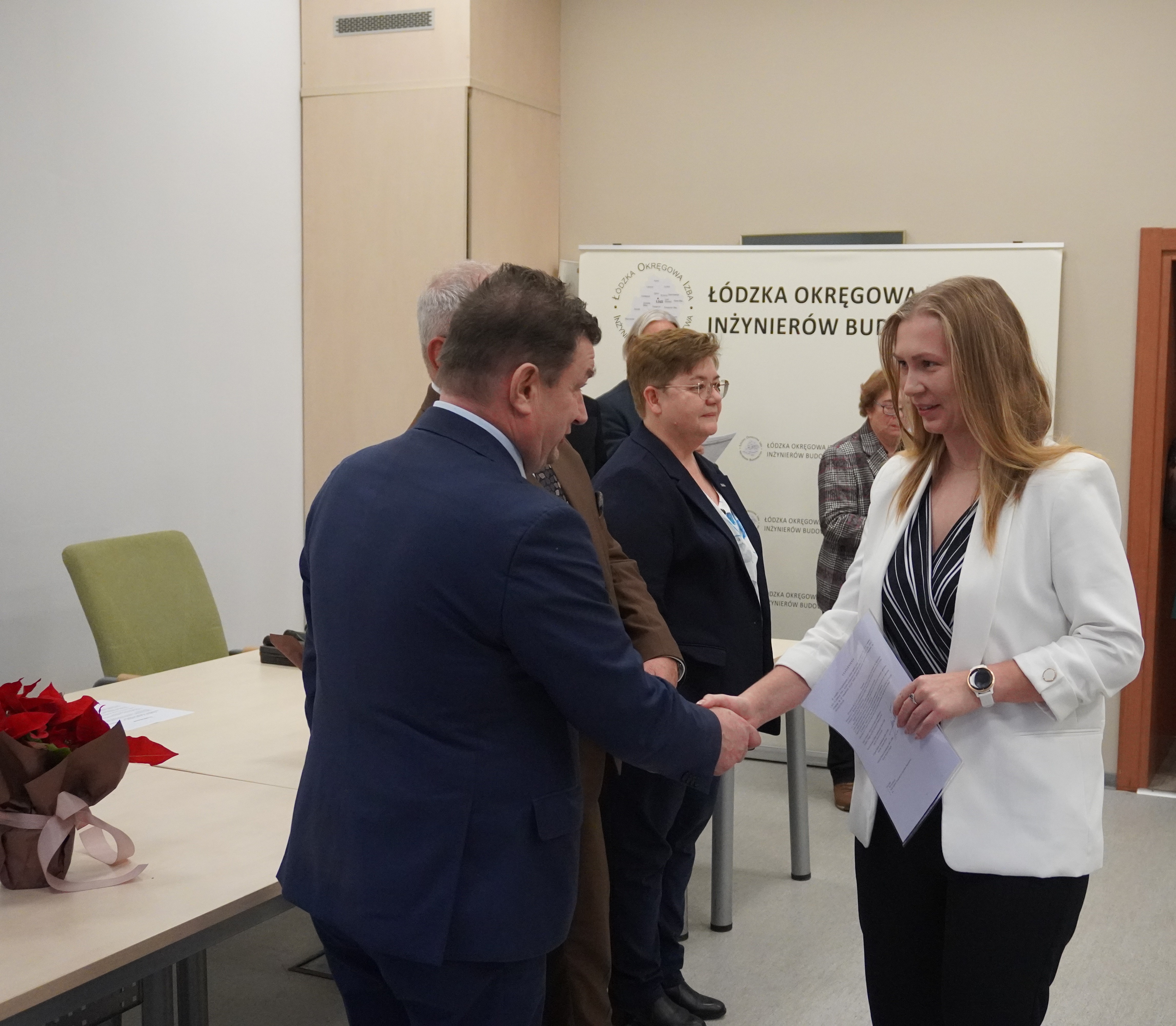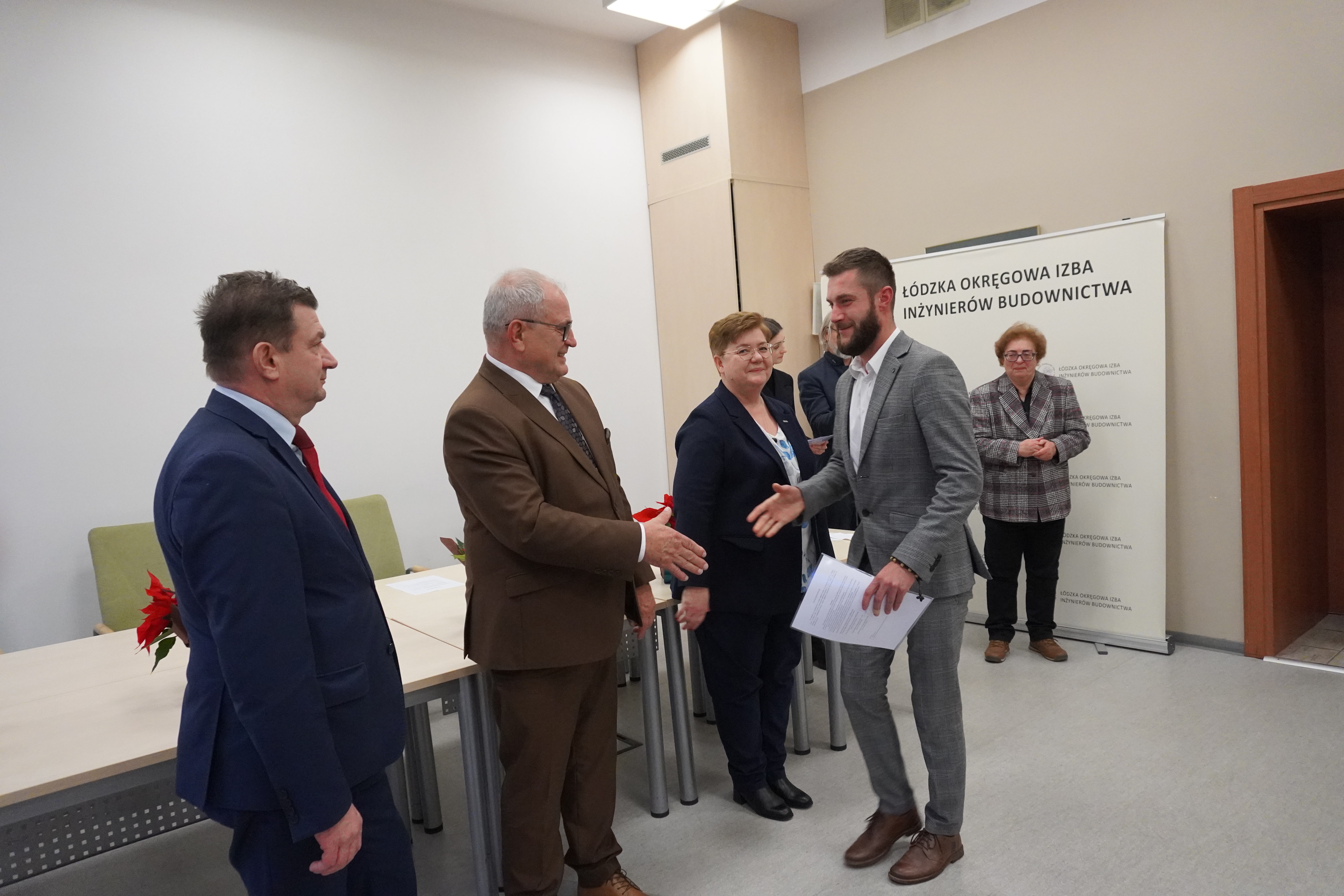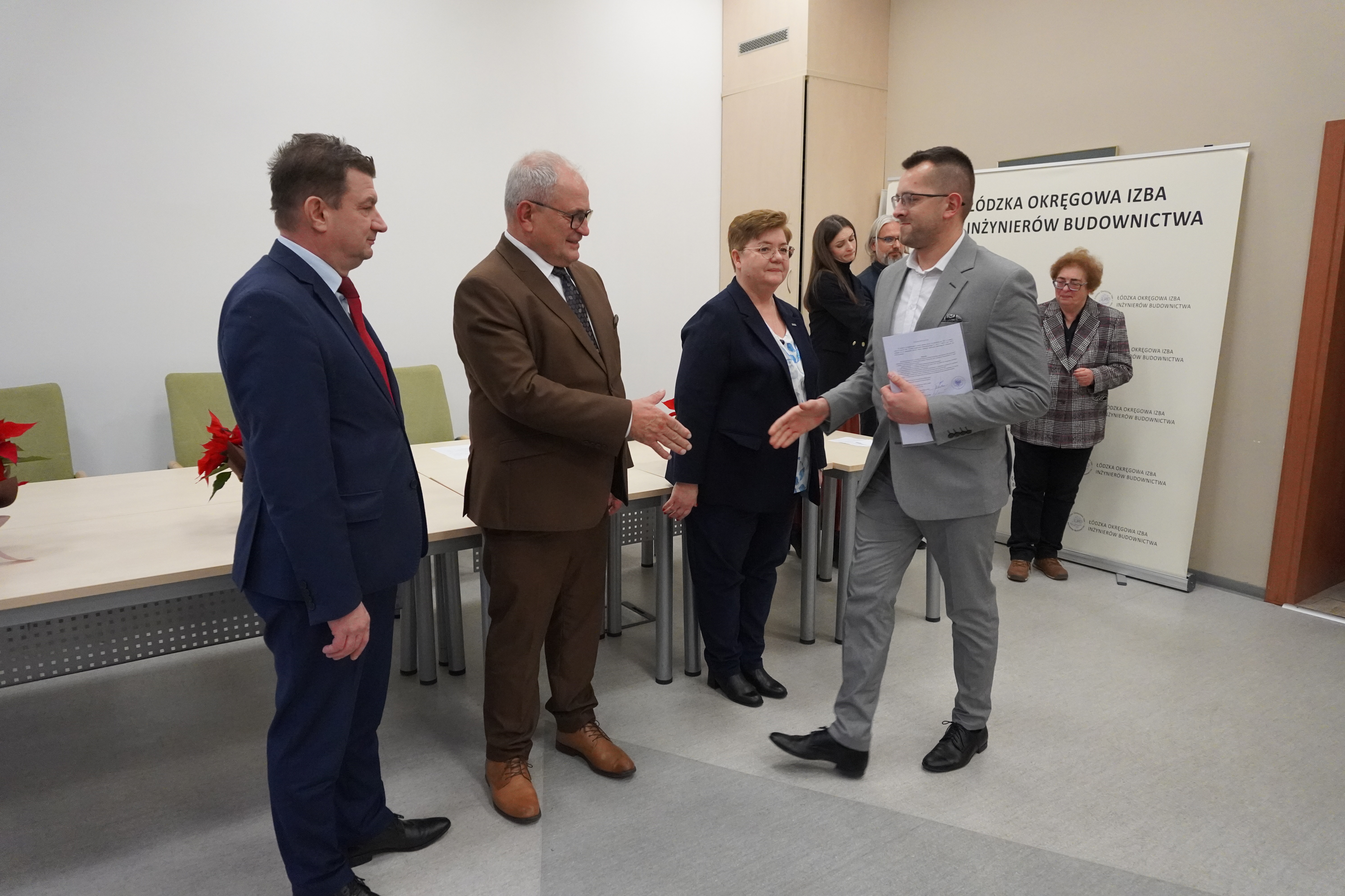 Zaproszeni goście złożyli serdeczne gratulacje nowo uprawnionym, życząc im satysfakcji z pracy, powodzenia w realizacji kolejnych wyzwań oraz sukcesów w dalszej drodze zawodowej. Podkreślali również znaczenie odpowiedzialności, doświadczenia i ciągłego doskonalenia w zawodzie inżyniera budownictwa.