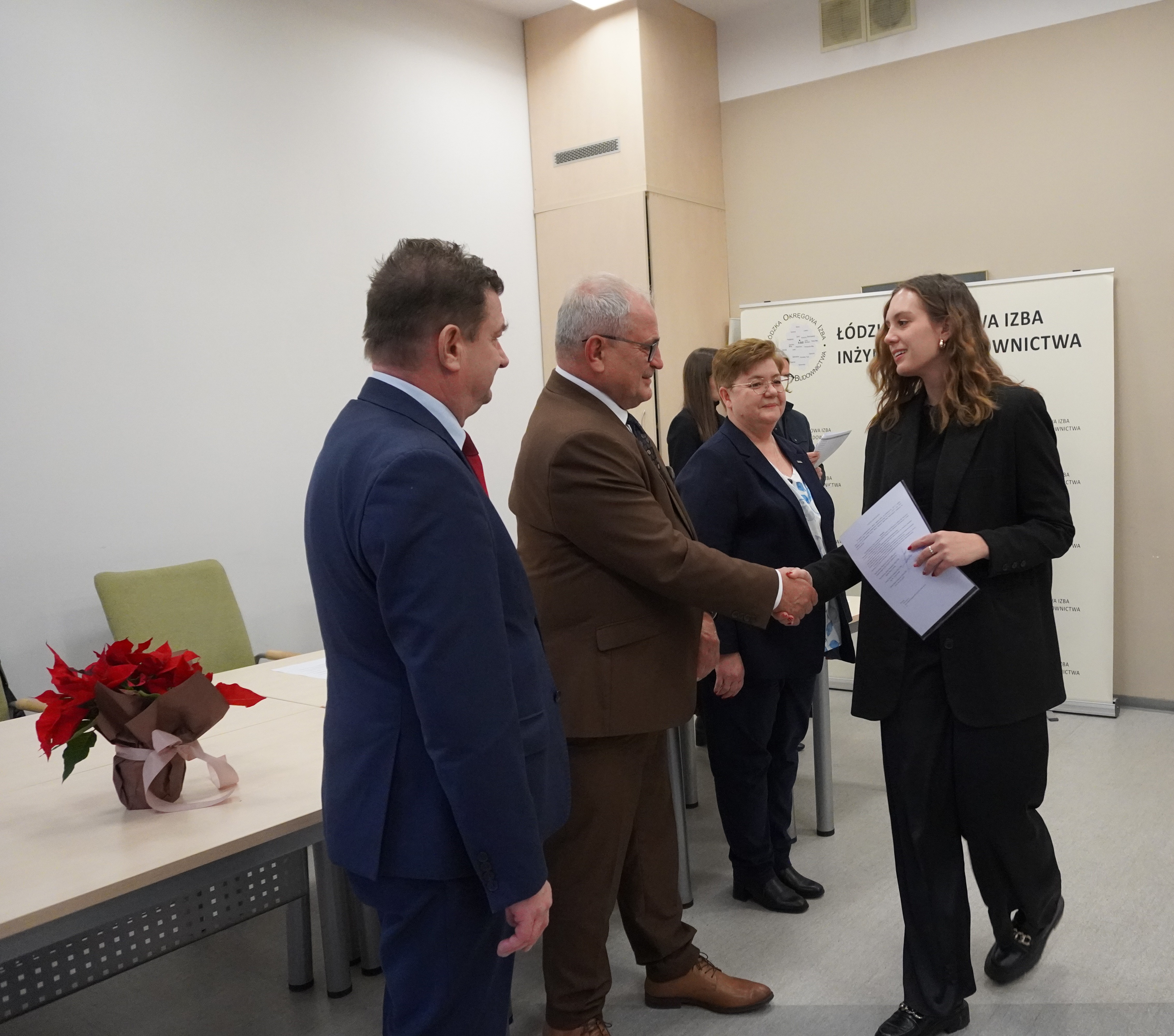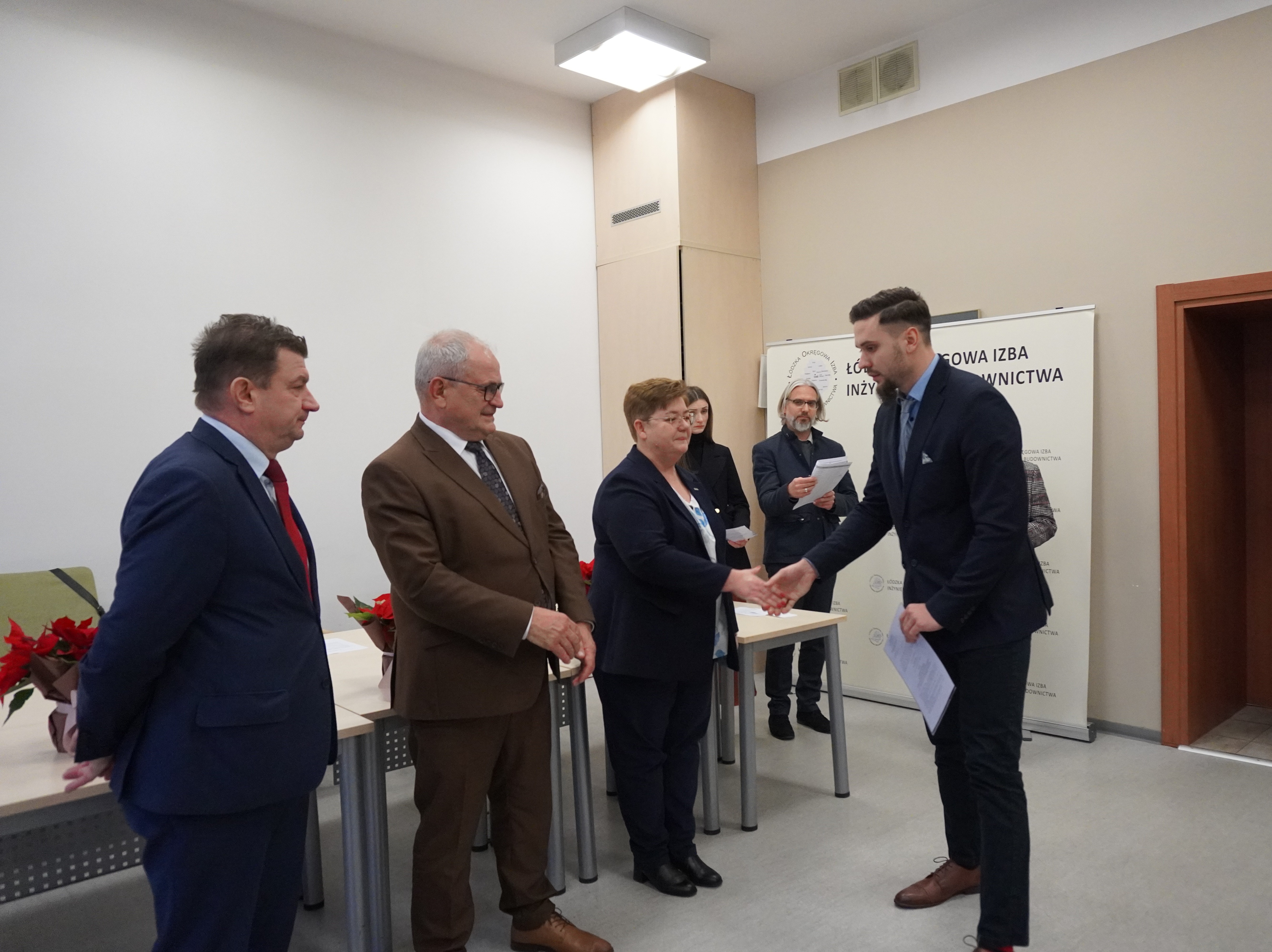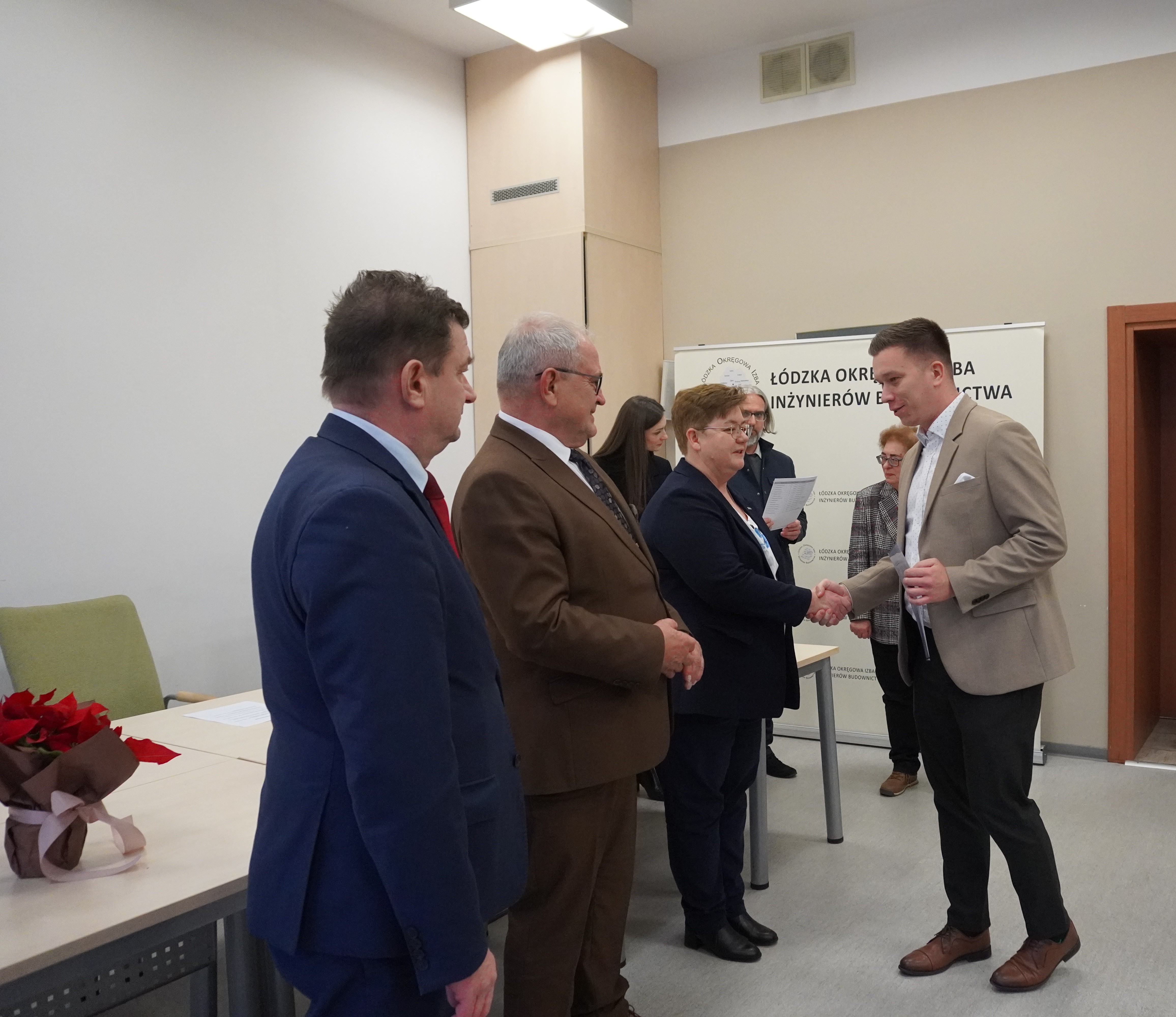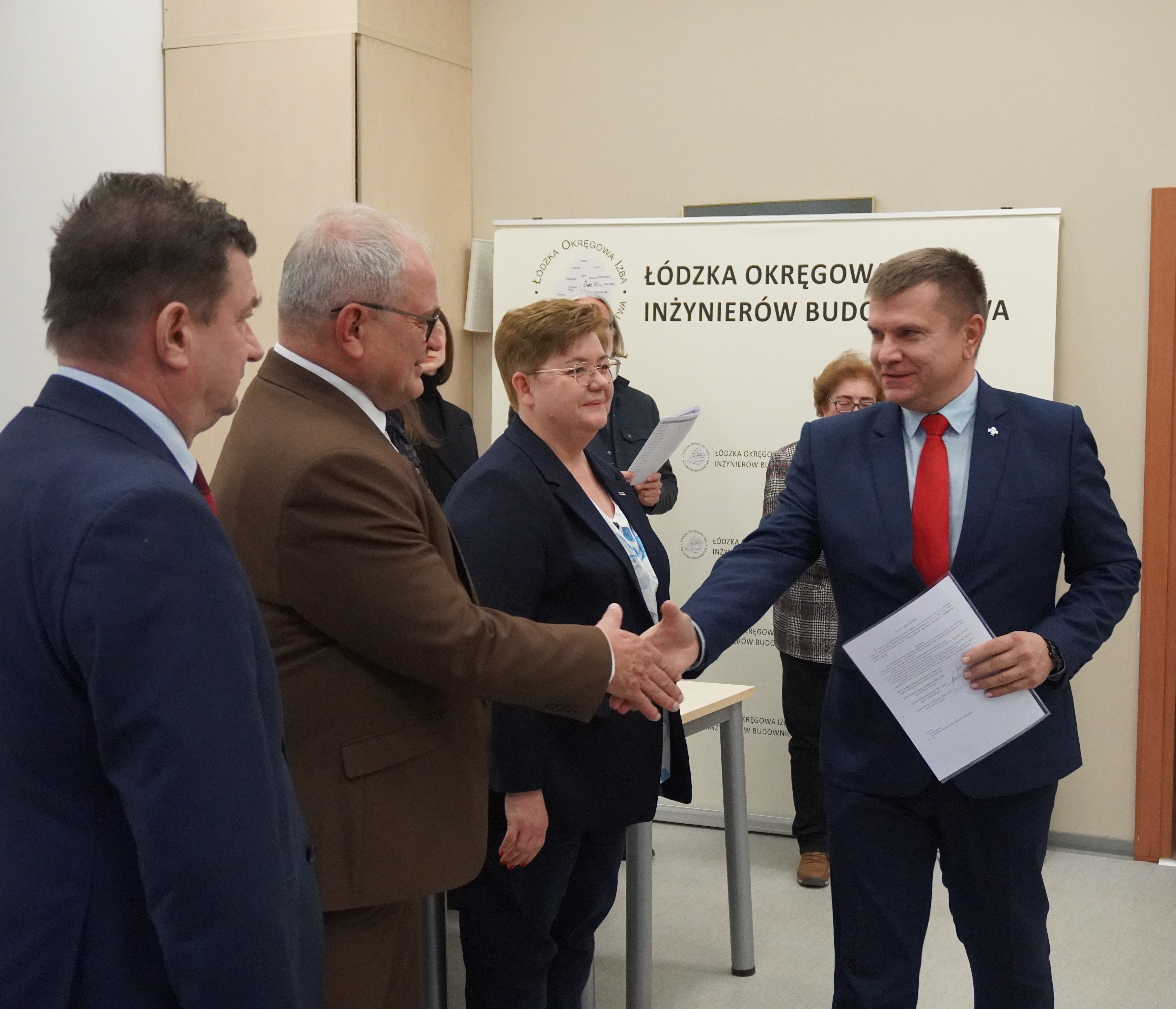Zaproszeni goście złożyli serdeczne gratulacje nowo uprawnionym, życząc im satysfakcji z pracy, powodzenia w realizacji kolejnych wyzwań oraz sukcesów w dalszej drodze zawodowej. Podkreślali również znaczenie odpowiedzialności, doświadczenia i ciągłego doskonalenia w zawodzie inżyniera budownictwa.